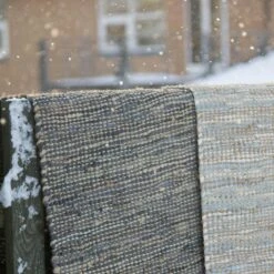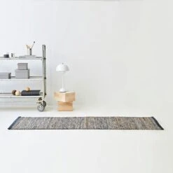 The classic rag rug in modern version consists of a combination of leftover leather from the fashion industry and fiber jute. The remains are frugally selected and is woven together by hand to get the best results. The size may vary by 3-5%.